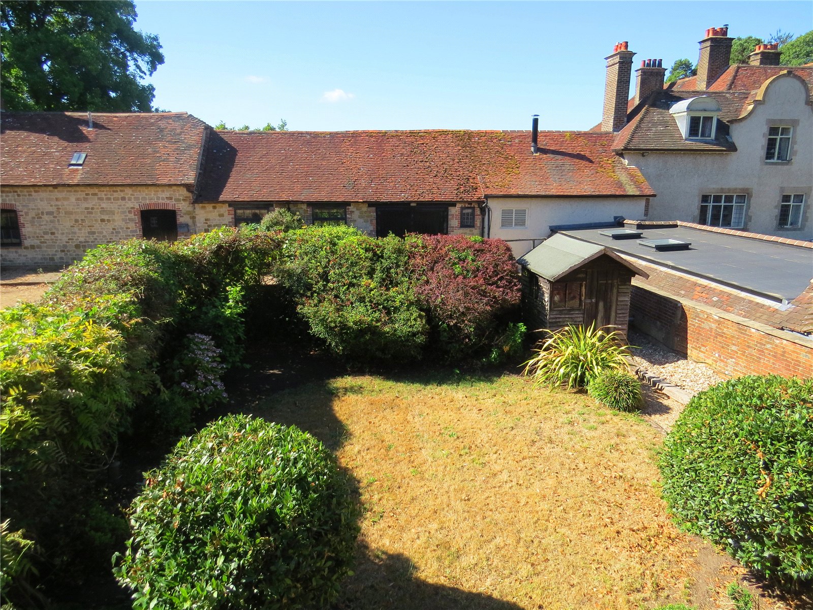 The first floor landing leads to a master bedroom with generous en suite bathroom, two further bedrooms overlooking the rear garden and courtyard beyond and a further bathroom with shower unit and W.C. shed.