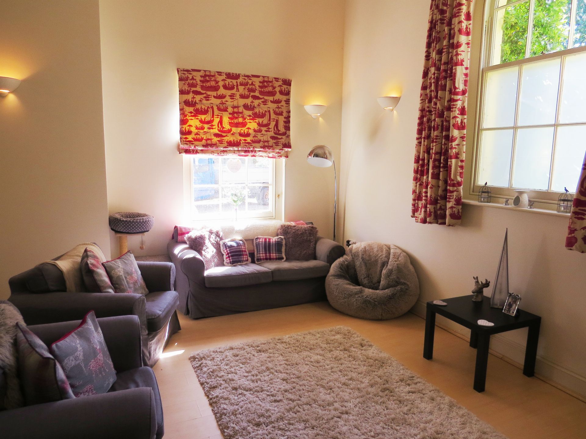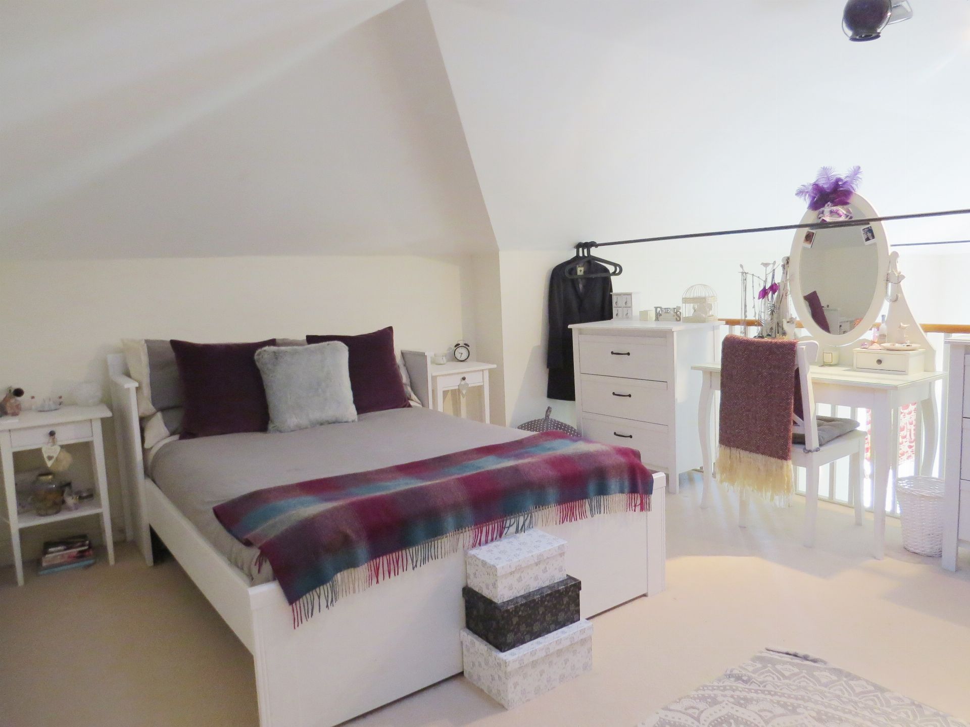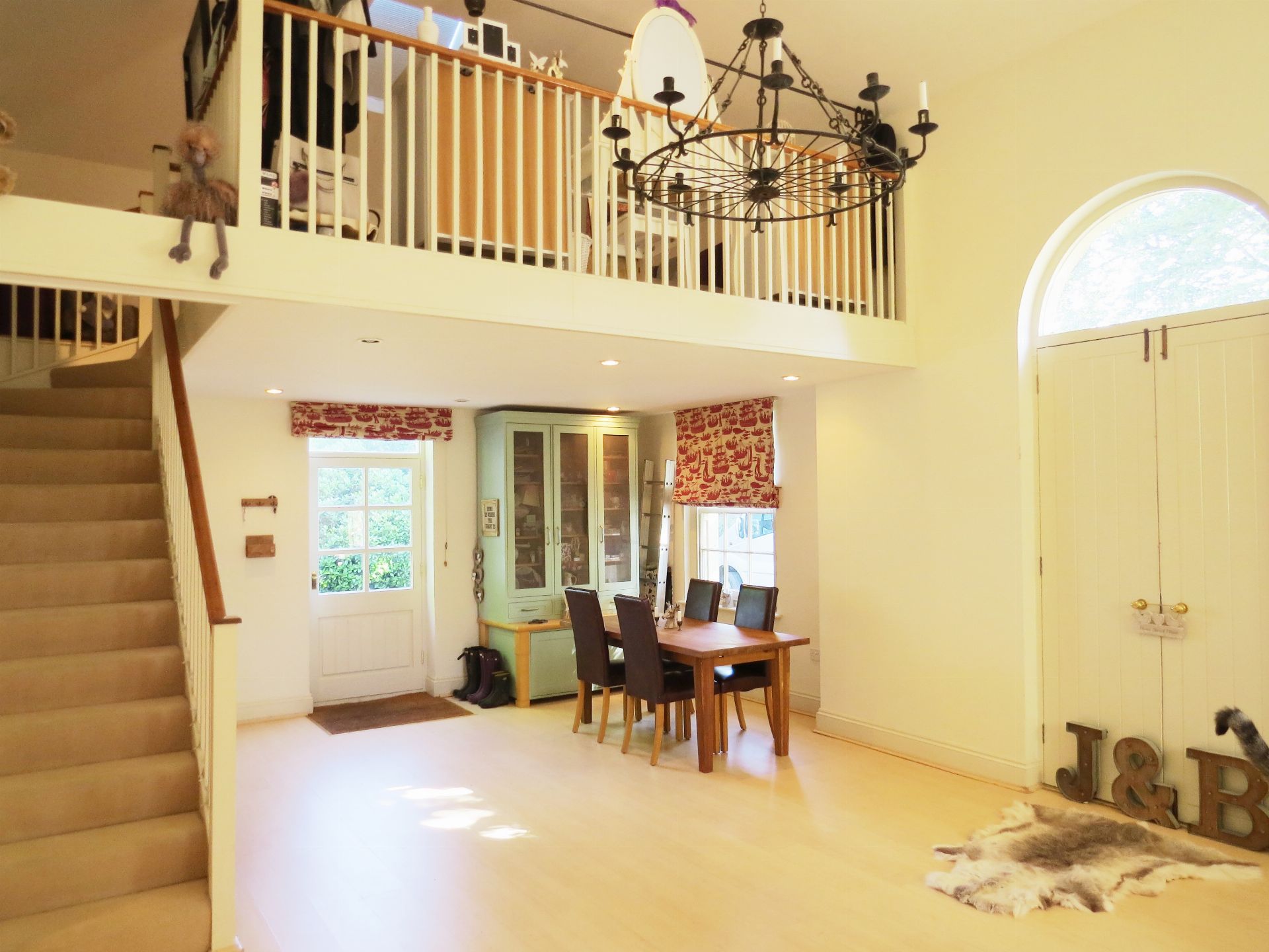 The Annexe provides attractive, light and spacious accommodation ideal for a single person / couple. The reception room with imposing feature double doors, is triple aspect and elegant. The kitchen is well fitted with a breakfast bar, electric cooker, fridge / freezer and washing machine. The modern bathroom has a shower over the bath. Carpeted stairs lead to the galleried double bedroom area above.